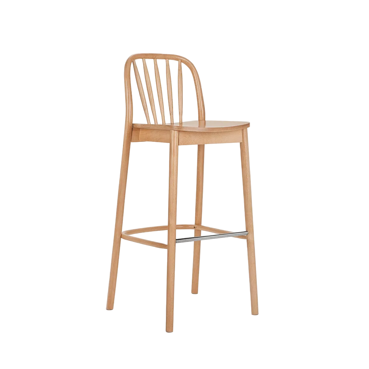 The ALDO barstool combines elegance and functionality. The traditional technique of manual wood bending has created a smooth line connecting the backrest with the rear legs, ensuring exceptional durability and aesthetics. The backrest, decorated with delicate wooden elements in the shape of a peacock's tail, adds lightness and elegance to the furniture. It is the perfect choice for aesthetes who appreciate the combination of traditional craftsmanship with modern design, seeking unique solutions for their interiors.