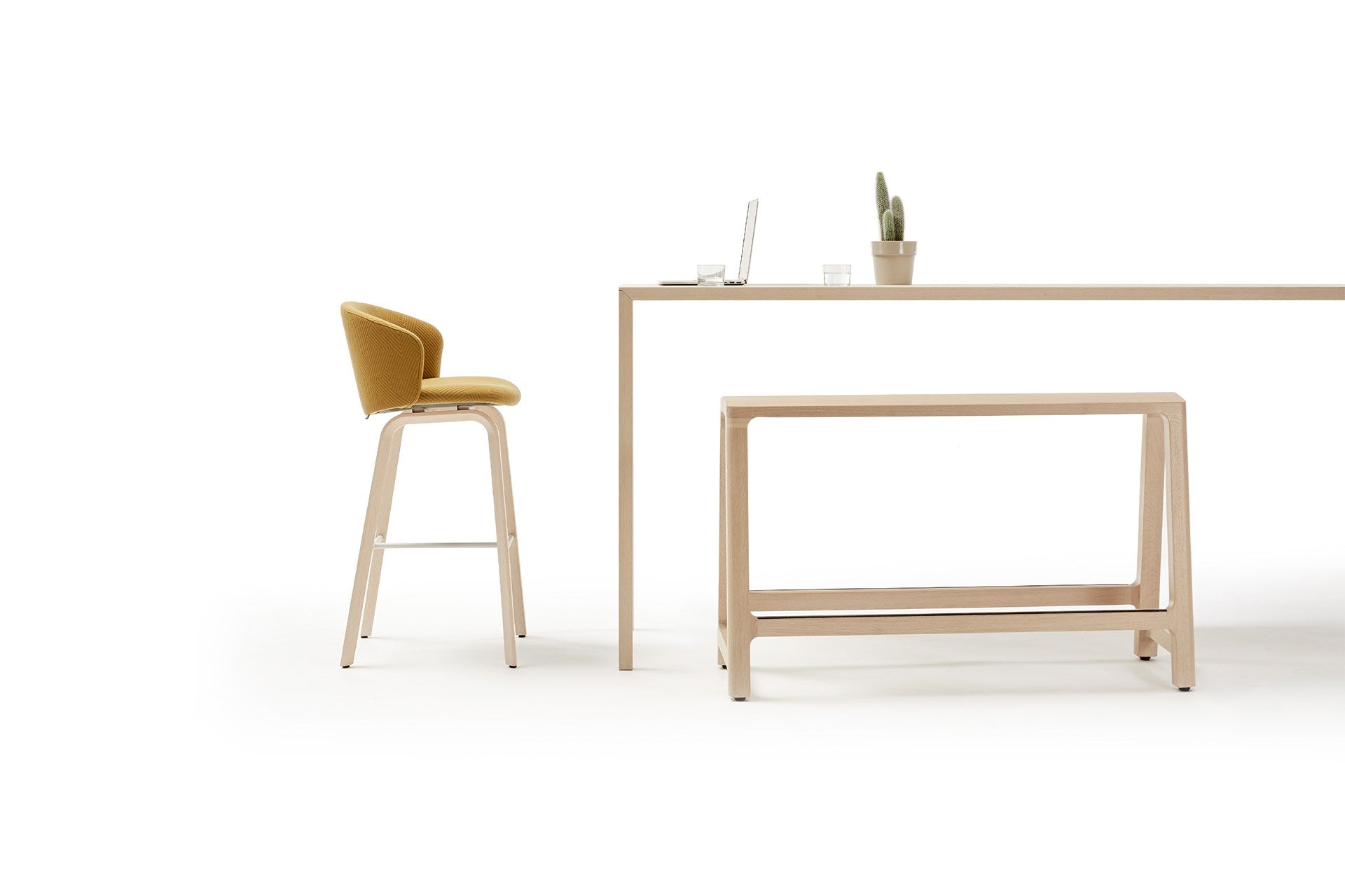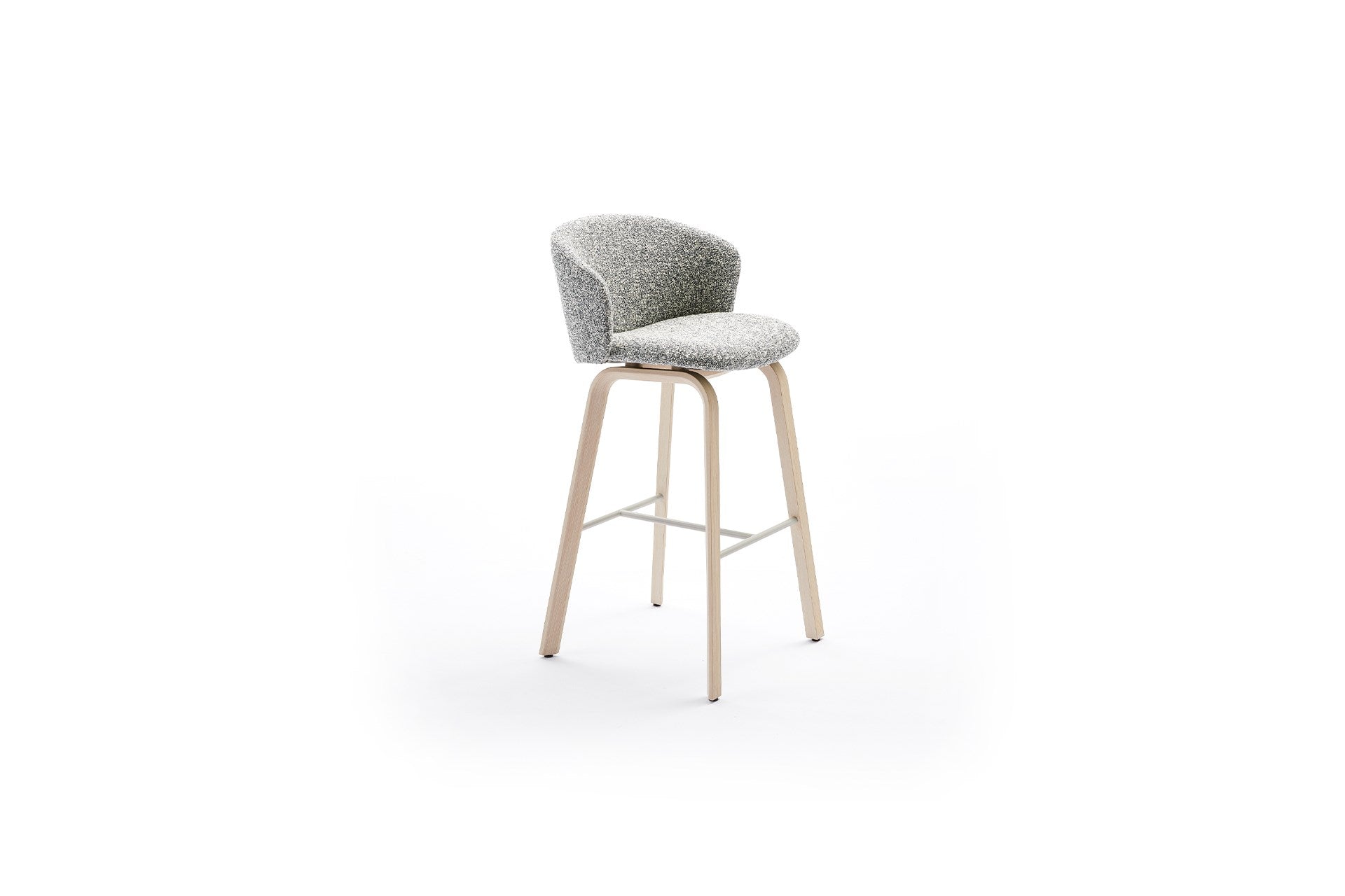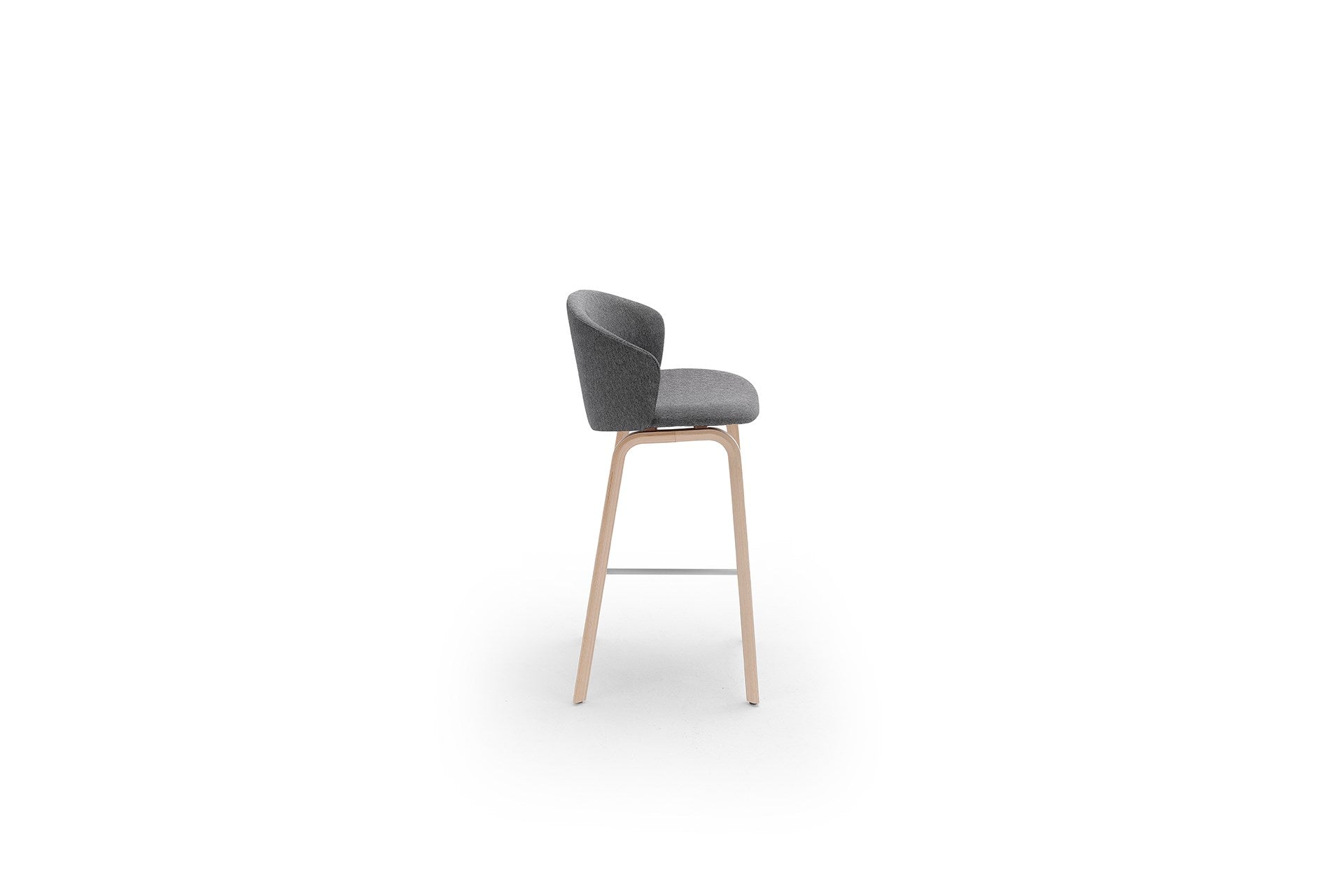 The Close Barstool is an extremely comfortable high chair for the Arco standing tables. It is an ideal combination for short, informal meetings or workplaces where standing and high seating are intertwined. The Close barstool can also be used outside the work environment, for example, in bars and restaurants. The barstool is available in a height of 65 and 75 cm with a u-shaped foot in beech laminate with an oak top layer. The foot support is metal with an epoxy fine texture in light grey or black.