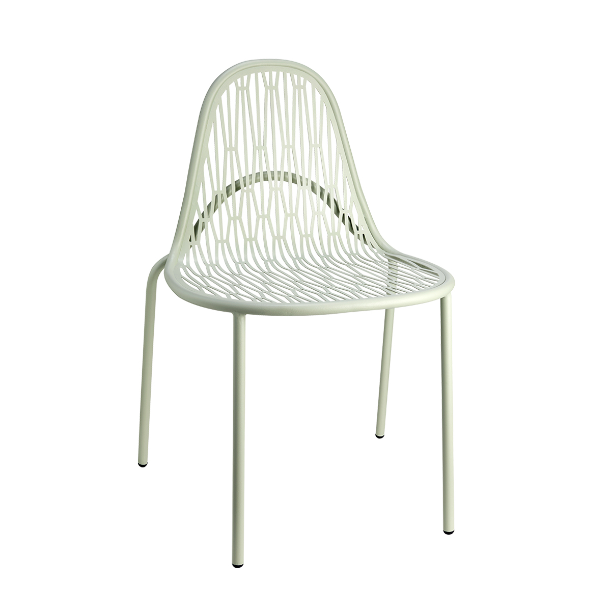 Despite its apparent simplicity, its design expresses a true production challenge: to extract the backrest and seat from a single perforated and calendered piece, and then weld them almost invisibly to the tubular frame. A particularly complex treatment that brings the metal close to its flexibility limit and softens its impenetrable coldness. Evoking the warp and weft of a fabric, but also the play of shadows of a tree canopy, Malvasia is a seat that lends itself to animate any outdoor space, even terraces and gardens. The legs, characterized by a double curve, give poetic lightness to the furnishing, whose minimal profile is completed by the addition of armrests and soft cushions.
