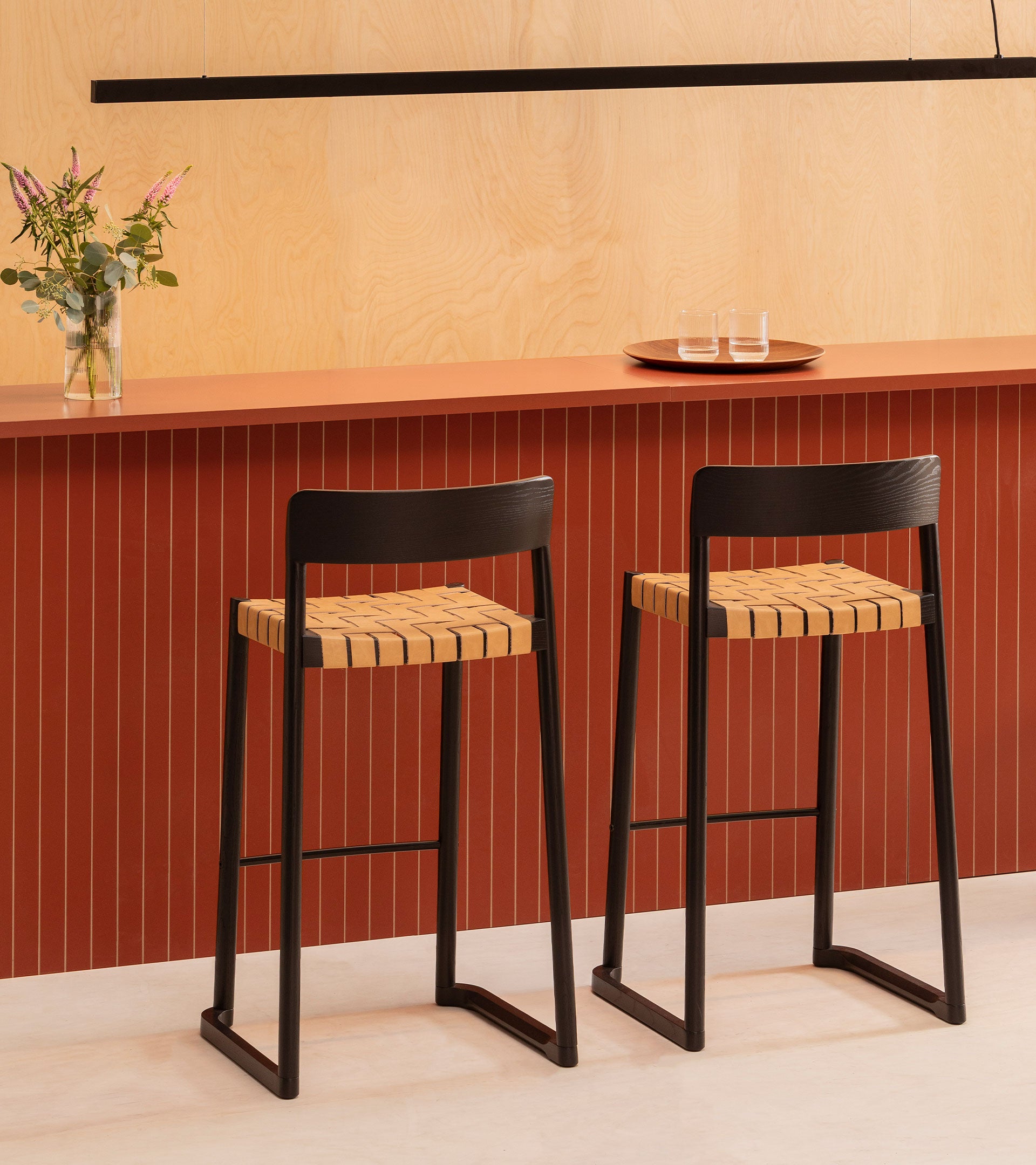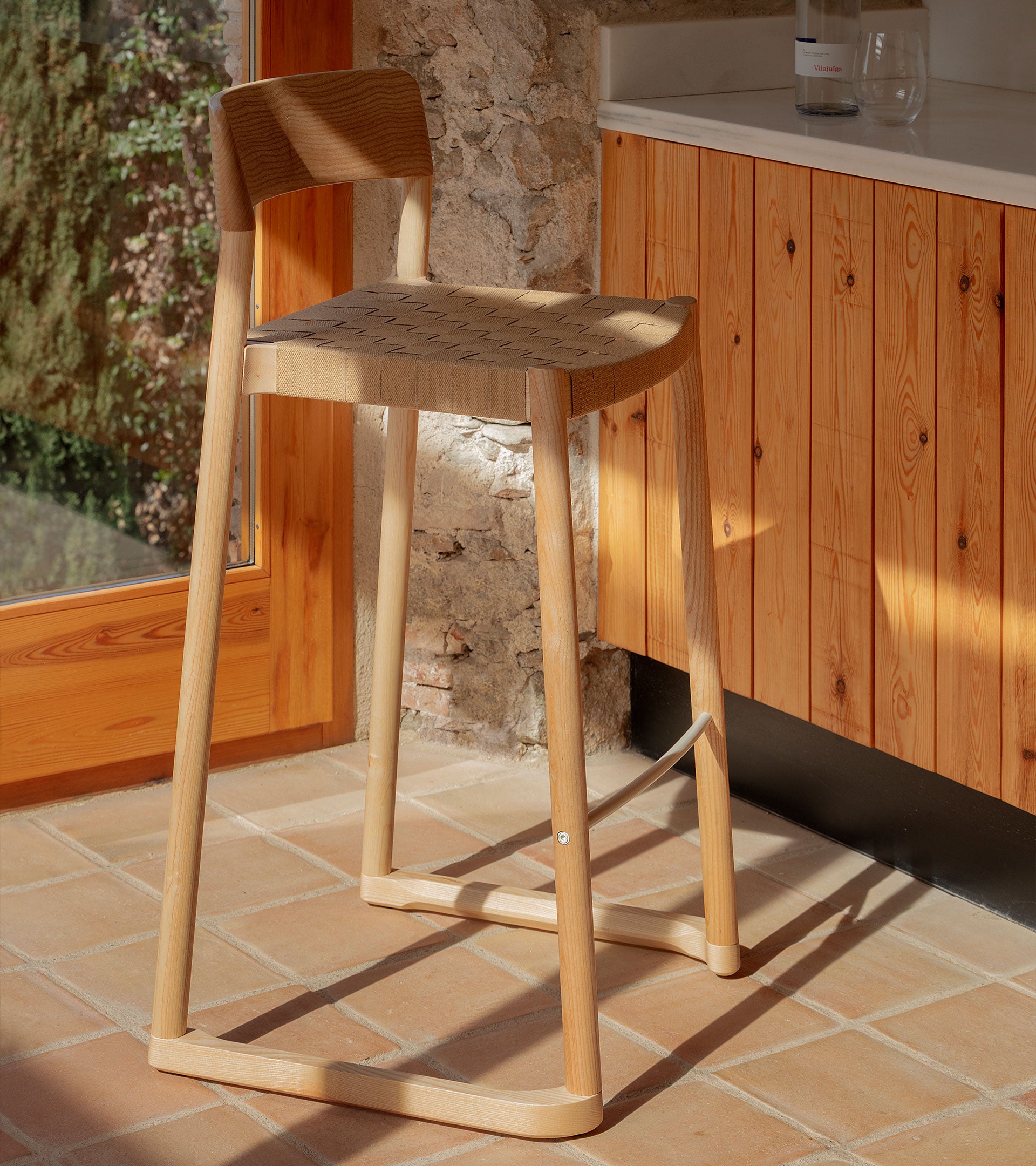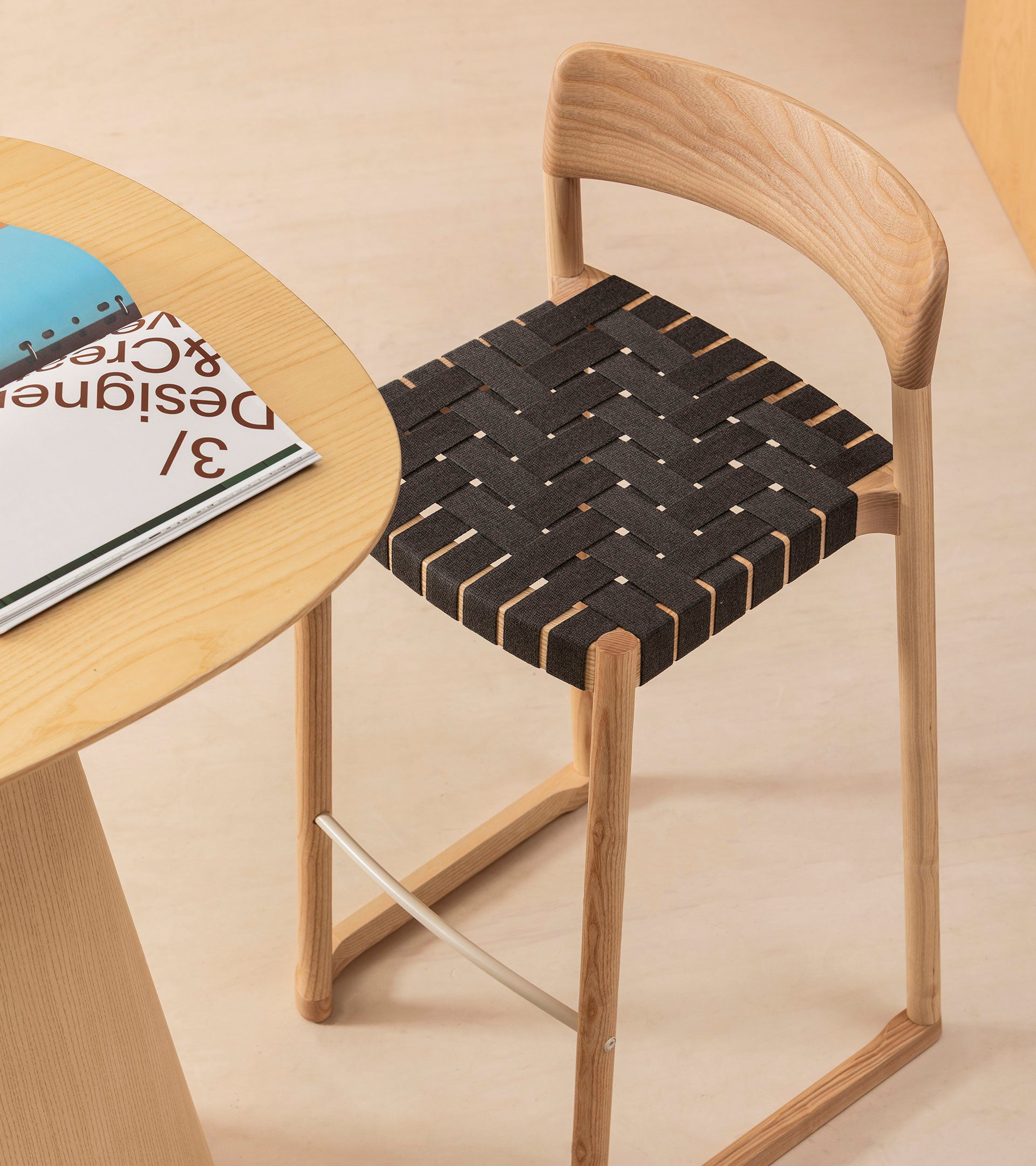 The pieces are made of ash wood and the backrest seems to have been sculpted to delicately adapt to the back. The seat can be woven with different materials on its structure to offer a soft and comfortable sitting position.