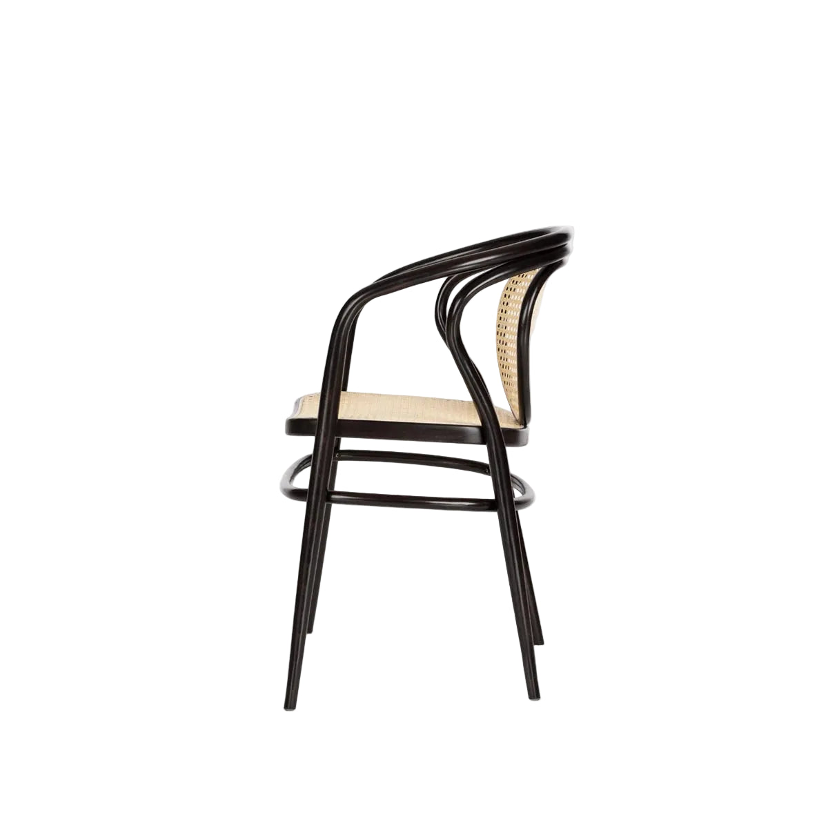 The B-1400 armchair stands out within its family for the striking way its front and rear legs converge at the top of the backrest. Crafted from bent beech wood, it is a remarkably lightweight piece whose broad, comfortable seat is perfectly balanced against its minimalist frame, composed of just two beech rods. Despite its refined simplicity, the B-1400 offers versatility, with the option to line the seat in a woven mat or upholster it in fabric, echoing the possibilities of its companion chair.