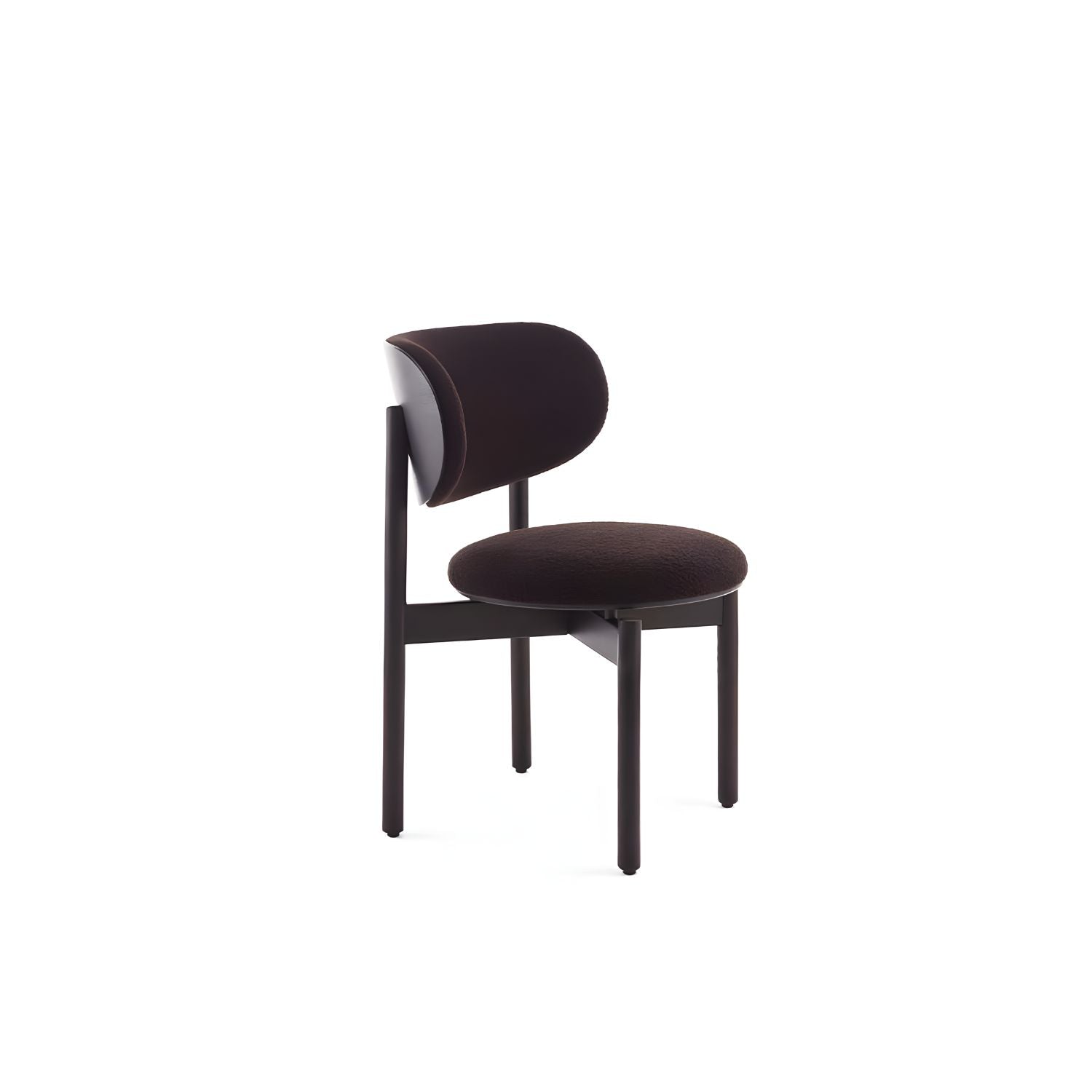 “Re-volve” refers to the chair’s shape: simple geometric shapes revolving around an axis. Furthermore, the bowl-shaped seat adds greater comfort. The chair is built to be disassembled, thanks to the lack of glue, and the design of its parts.